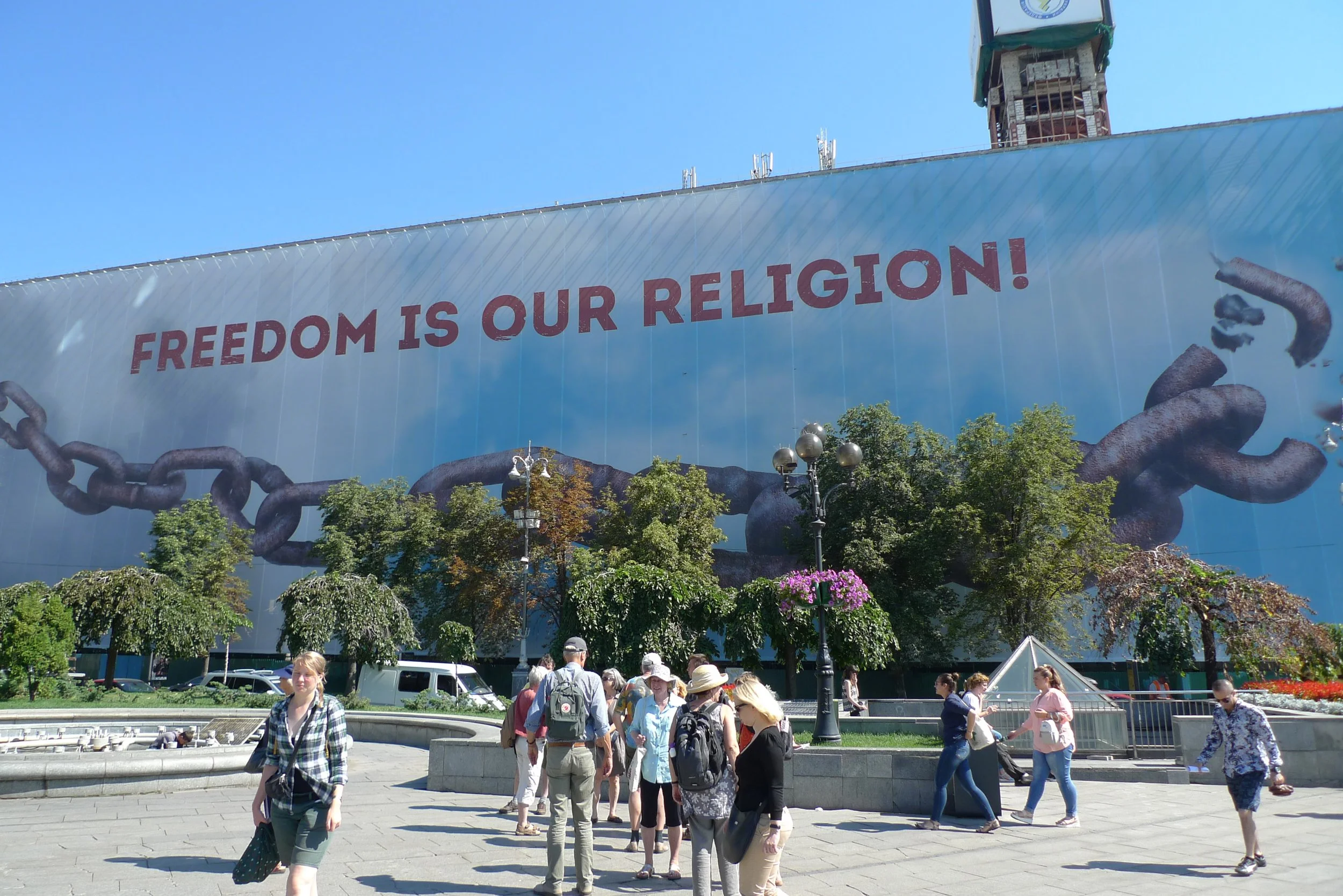 Kiew 2017, Transparent am ehemaligen Gewerkschaftshaus auf dem Maidan © Inka Thunecke