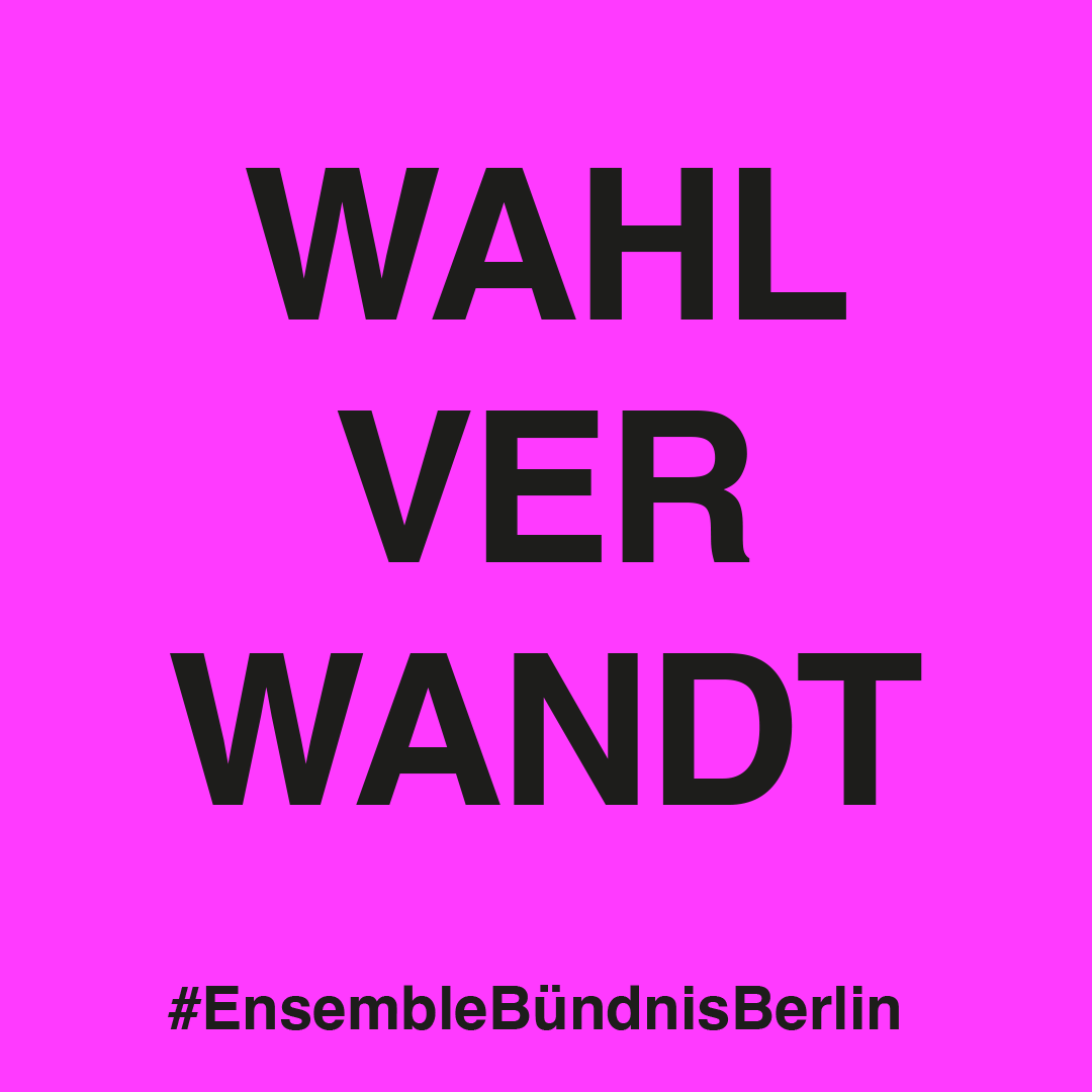 Das EnsembleBündnisBerlin – ein Zusammenschluss von Mitgliedern mehrerer Ensemble-Theater Berlins performt mit Kolleg*innen von Brandenburger Theatern den Kollektivtext WAHLVERWANDT.